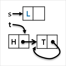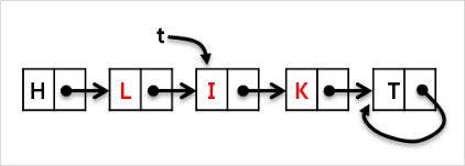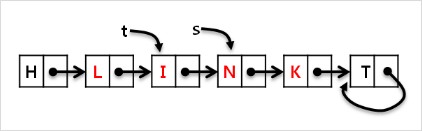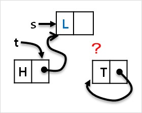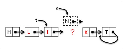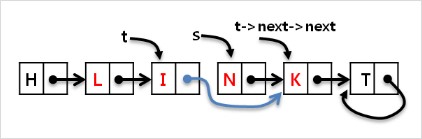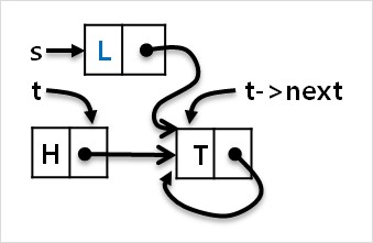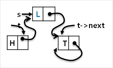 (라) t의 다음 node 를 L node로 로 변경합니다. (t->next=s)